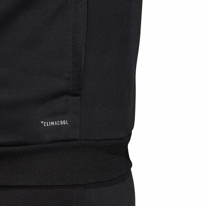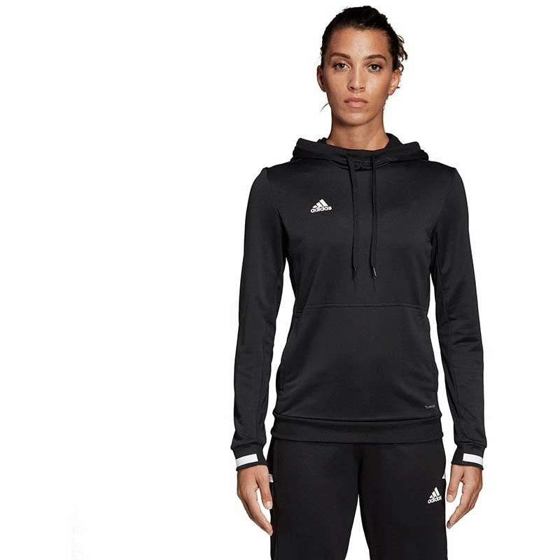 De adidas T19 Hoody Heren is afkomstig uit de T19 collectie van adidas. Deze collectie bevat moderne teamkleding die is ontworpen voor spelers van ieder niveau. De kleding zorgt voor uitstekende ventilatie en beschikt over een hoge duurzaamheid. De sportieve hoodie beschikt over een elastische tailleband en manchetten die zorgen voor een comfortabele pasvorm. Daarnaast beschikt de hoodie over een capuchon met aantrekkoord en twee zakken. Het lichtgewicht materiaal zorgt voor uitstekende ventilatie en optimale zweetafvoering. De hoodie is afgewerkt met het adidas logo op de borst. De toegepaste CLIMALITE® technologie bestaat uit lichtgewicht ademende stoffen die dicht op de huid worden gedragen en die warmte en zweet afvoeren zodat je koel en droog blijft in warme omstandigheden.