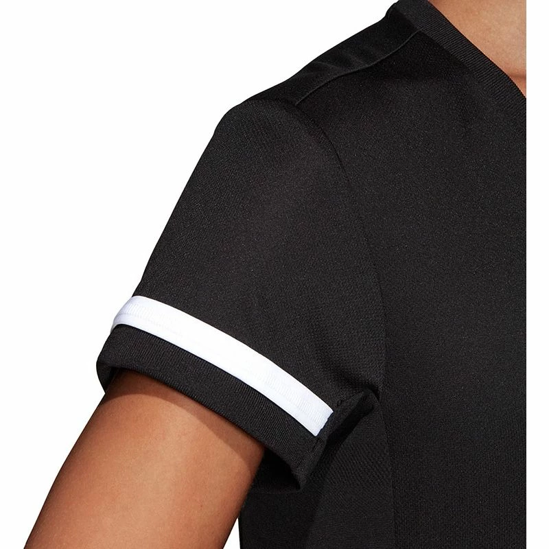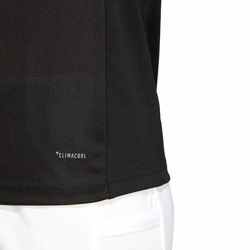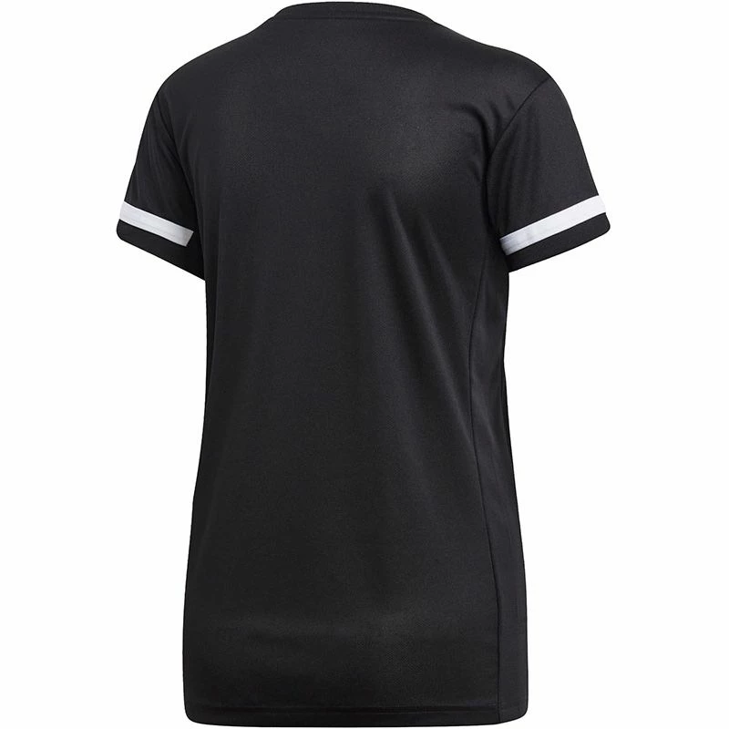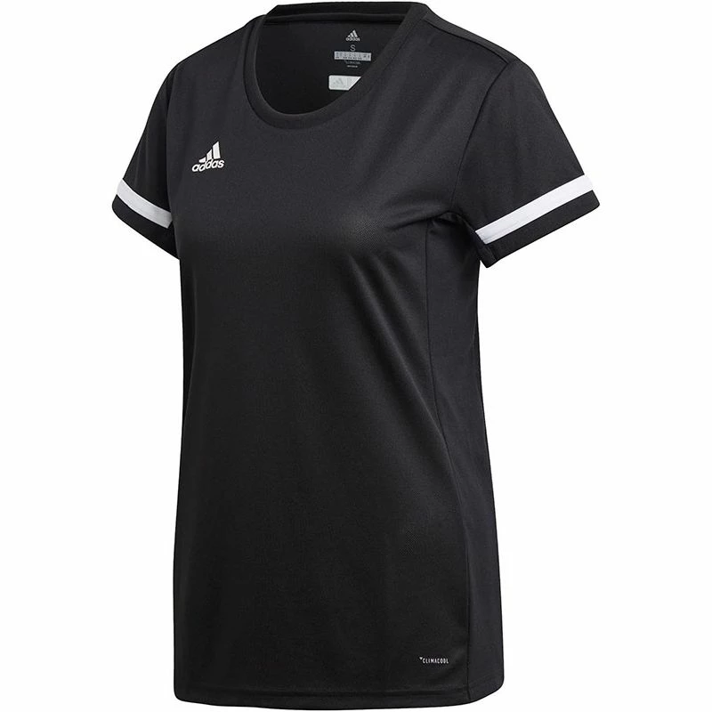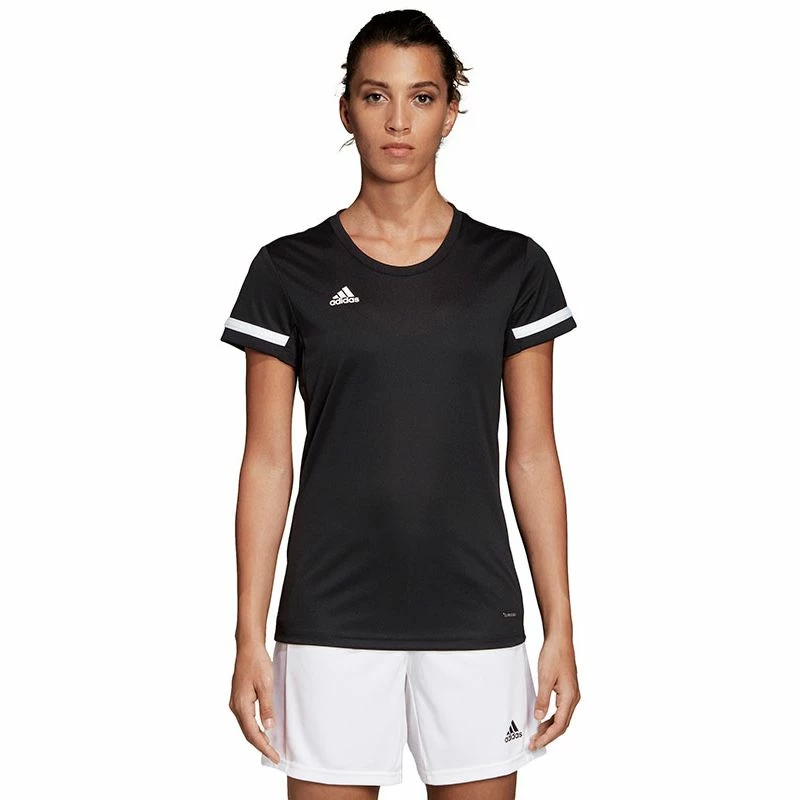 De adidas T19 Team Tee Dames is afkomstig uit de T19 collectie van adidas. Deze collectie bevat moderne teamkleding die is ontworpen voor spelers van ieder niveau. De kleding zorgt voor uitstekende ventilatie en beschikt over een hoge duurzaamheid. Het sportieve shirt heeft een normale pasvorm en beschikt over een ronde hals. Het lichtgewicht materiaal biedt veel ventilatie en zorgt voor optimale zweetafvoering. Bovendien zorgt het lichtgewicht materiaal met gladde naden voor veel bewegingsvrijheid. Het shirt is afgewerkt met het adidas logo op de borst. De toegepaste CLIMALITE® technologie bestaat uit lichtgewicht ademende stoffen die dicht op de huid worden gedragen en die warmte en zweet afvoeren zodat je koel en droog blijft in warme omstandigheden.