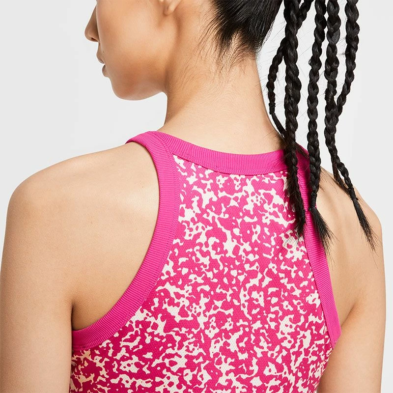 De top heeft een stijlvolle ronde hals en biedt lichtgewicht comfort. De mouwloze top bevat gladde naden en een smalle racerback op de rug die zorgen voor extra draagcomfort en optimale bewegingsvrijheid. De ronde zoom zorgt voor meer bedekking aan de voor- en achterzijde. De top is gemaakt vanΒ zacht, elastisch materiaal en is afgewerkt met een print die is geΓ―nspireerd op tenniskleding uit de jaren ’90.